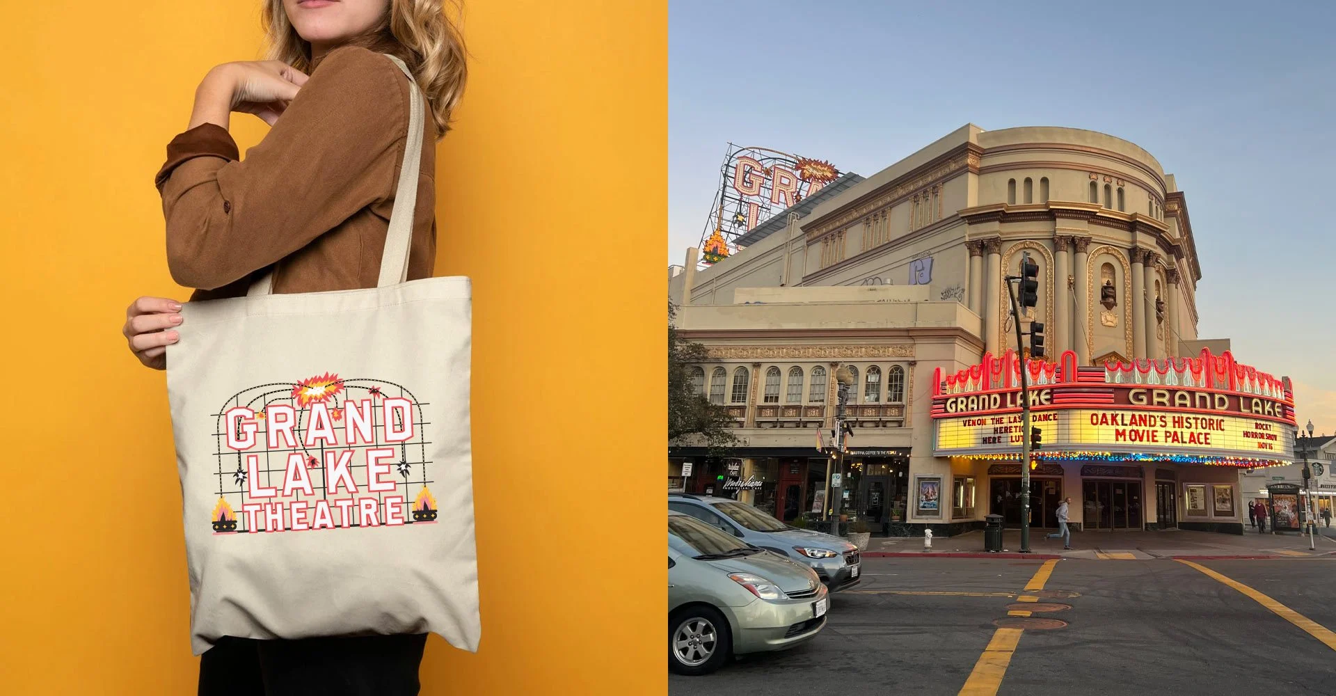 Narrative Merchandise: I translated the "Clean-Grit" aesthetic into physical goods. By focusing on the theater's unique architectural details (like the firelamps and ornate typography), I designed a merch line that feels like a "piece of Oakland history" rather than a standard souvenir.